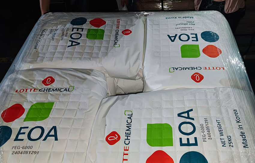 乐天PEG4000(Lotte EOA PEG4000)与乐天PEG6000(Lotte EOA PEG6000)作为聚乙二醇(PEG)系列中的重要成员,以其独特的化学性质和广泛的应用领域,在多个工业行业中发挥着不可或缺的作用。Lotte EOA是韩国乐天公司生产的一种聚乙二醇(PEG)产品,具体型号为PEG-4000/PEG-6000。Lotte EOA PEG-4000和PEG-6000是一种高分子聚合物,化学式为HO(CH2CH2O)nH,无刺激性,味微苦,具有良好的水溶性和广泛的相溶性。它广泛应用于多个行业,包括化妆品、制药、化纤、橡胶、塑料、造纸、油漆、电镀、农药、金属加工及食品加工等。